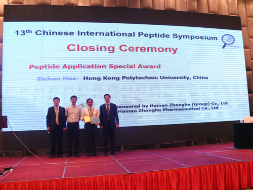 在此次大會(huì)上,中國國際多肽學(xué)術(shù)大會(huì)中和獎(jiǎng)·胡曉愚紀(jì)念獎(jiǎng)得主為澳大利亞昆士蘭大學(xué)Paul Alewood教授和香港理工大學(xué)葉濤教授;中和獎(jiǎng)多肽應(yīng)用杰出貢獻(xiàn)獎(jiǎng)由香港理工大學(xué)華子春教授獲得;中和獎(jiǎng)·多肽技術(shù)應(yīng)用獎(jiǎng)由集團(tuán)公司副總裁、中和多肽藥物研發(fā)有限公司總經(jīng)理周宗貞和CS Bio總經(jīng)理張恒維獲得;中和獎(jiǎng)·青年學(xué)術(shù)論文獎(jiǎng)和中和獎(jiǎng)·優(yōu)秀壁報(bào)獎(jiǎng)分別由30名來自海內(nèi)外的博士、研究生獲得。自此,第十三屆中國國際多肽學(xué)術(shù)大會(huì)在美麗的大同古城內(nèi)落下帷幕。