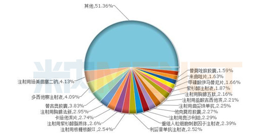 圖3:2017年中國公立醫(yī)療機構(gòu)終端抗腫瘤和免疫調(diào)節(jié)劑格局