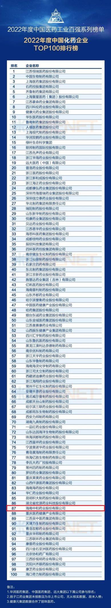 6月27日,2023米思會(huì)在浙江湖州·龍之夢(mèng)國(guó)際會(huì)議中心隆重召開(kāi),會(huì)上發(fā)布了2022年度中國(guó)醫(yī)藥工業(yè)百?gòu)?qiáng)系列榜單。海南中和藥業(yè)再度榮登中國(guó)化藥企業(yè)TOP100排行榜,位列第87位,較2021年前進(jìn)了3個(gè)名次,并已連續(xù)5年蟬聯(lián)此項(xiàng)殊榮。